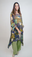 Descubre la fusión perfecta entre arte, lujo y sofisticación con este exclusivo set compuesto por una túnica 100% gasa de seda natural y un pantalón de lino belga.