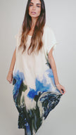 Sumérgete en la elegancia con nuestra exquisita túnica 100% seda natural, una pieza única que fusiona la moda con el arte. Su delicado estampado floral, inspirado en las pinceladas de una obra maestra, convierte cada diseño en una expresión de belleza y sofisticación.