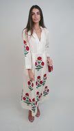 Este vestido, confeccionado en una exquisita mezcla de seda y algodón, destaca por su comodidad y sofisticación. Su precioso estampado de flores le otorga un toque único y elegante, convirtiéndolo en una pieza exclusiva ideal para quienes buscan realzar su estilo con delicadeza y distinción.